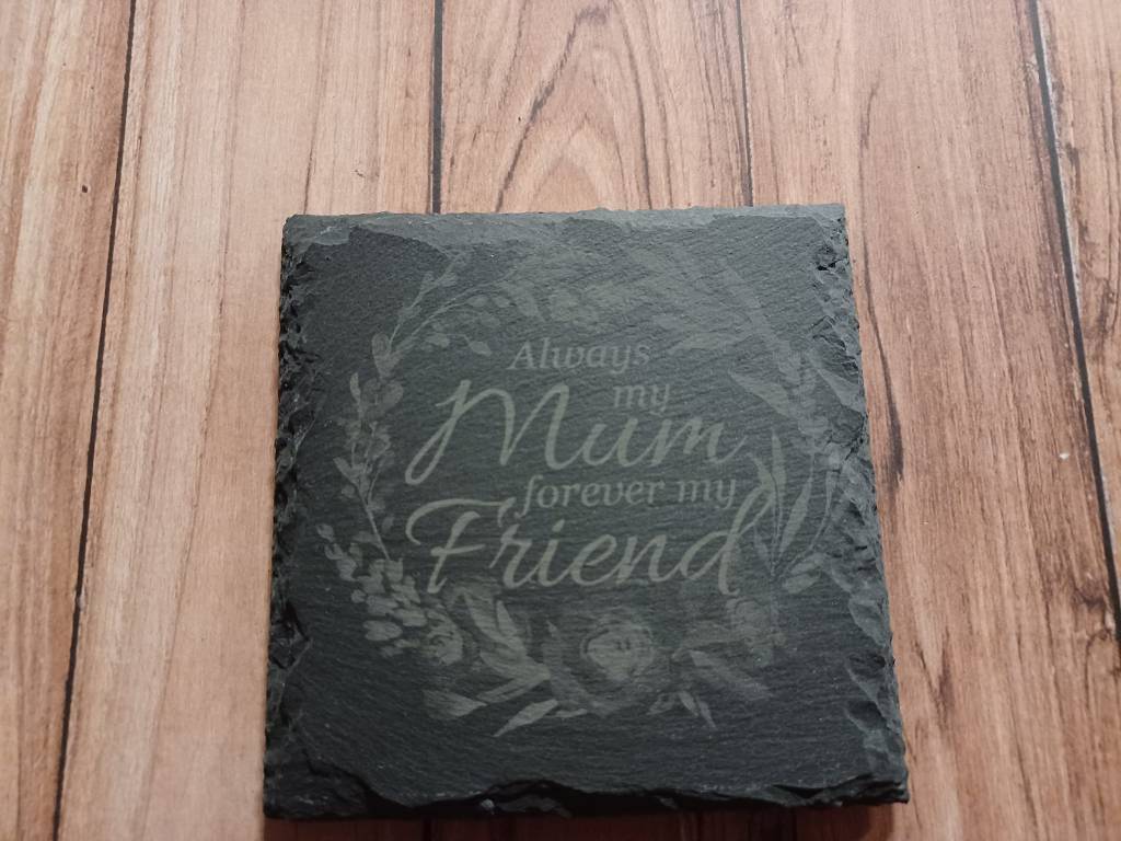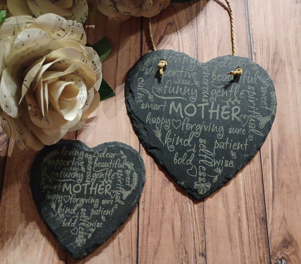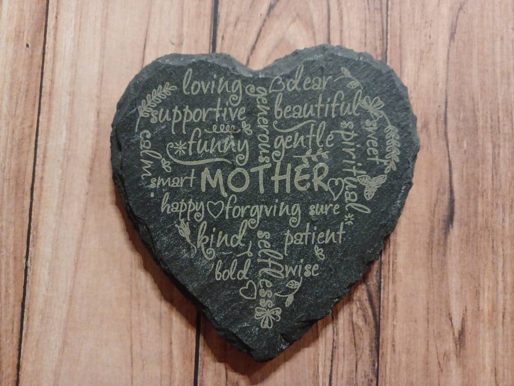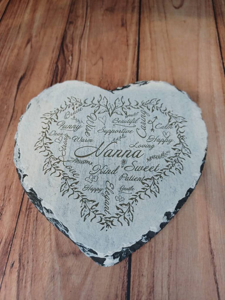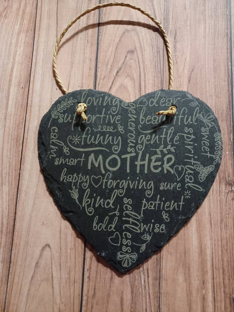 We have a BRAND NEW addition to our crafting portfolio where we can now offer to laser engrave a personailsed Slate coaster or Hanging heart. (More stock will be available soon, wood items and more) but for now as we grow this area you can have your photos, kids drawings, pets, anniversary dates, anything you choose, engraved onto a lovely keepsake. Below are a few examples of recent work we have done.