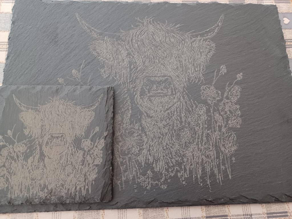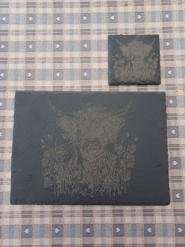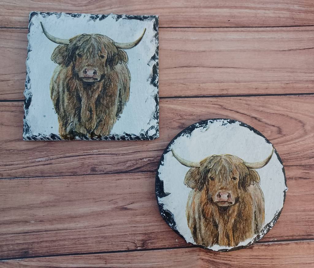 Etsy Shop: https://www.etsy.com/uk/listing/1658417892/slate-placemat-coaster-set-highland-cow
