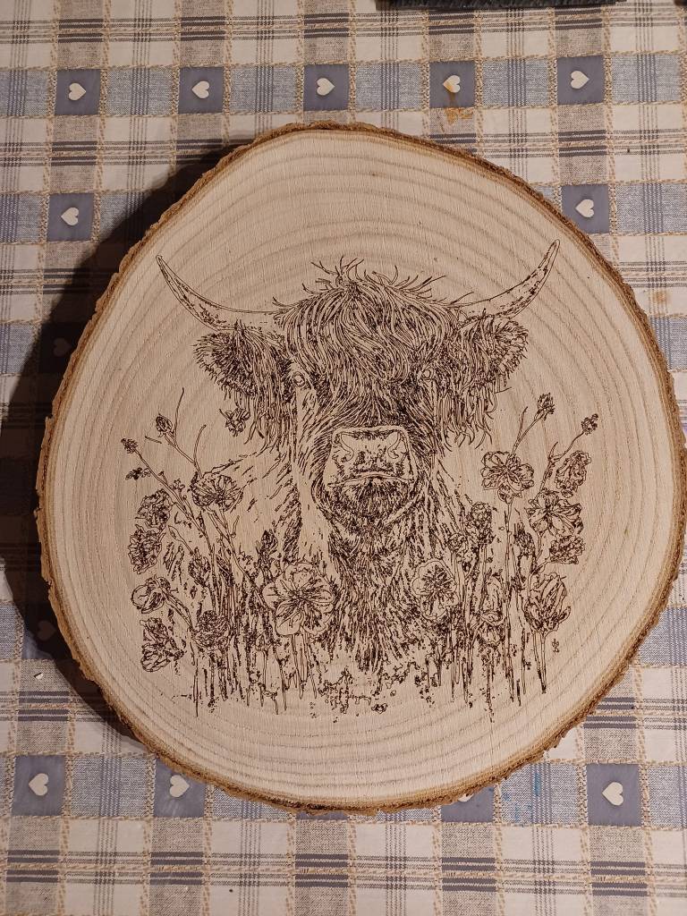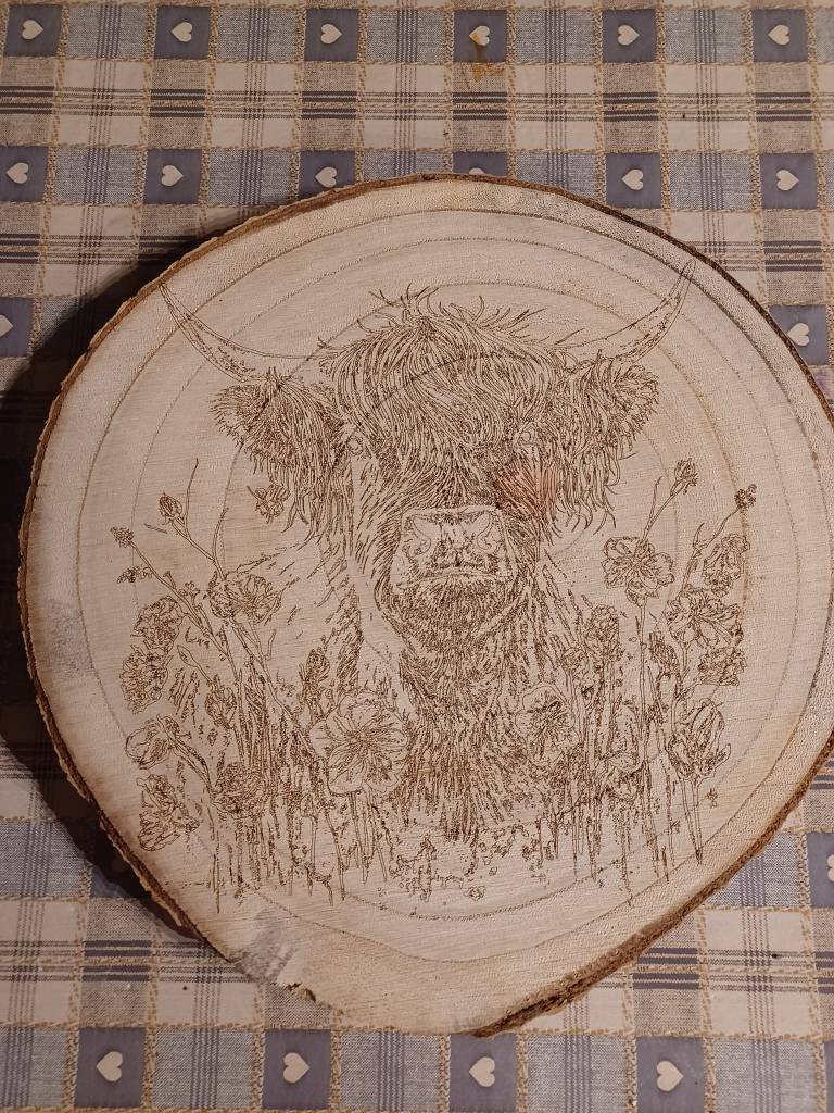 Available to purchase from my Etsy Page: https://www.etsy.com/uk/listing/1672586189/highland-cow-wooden-log-slice-large?ref=listings_manager_grid
