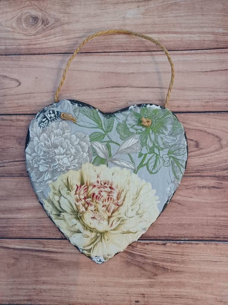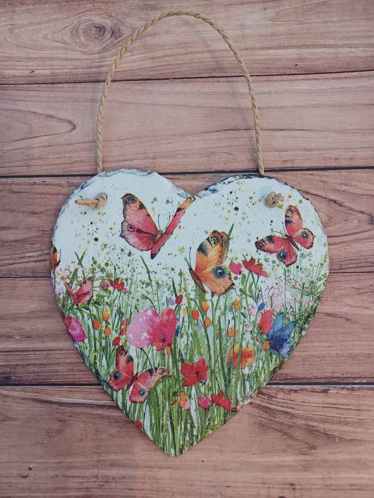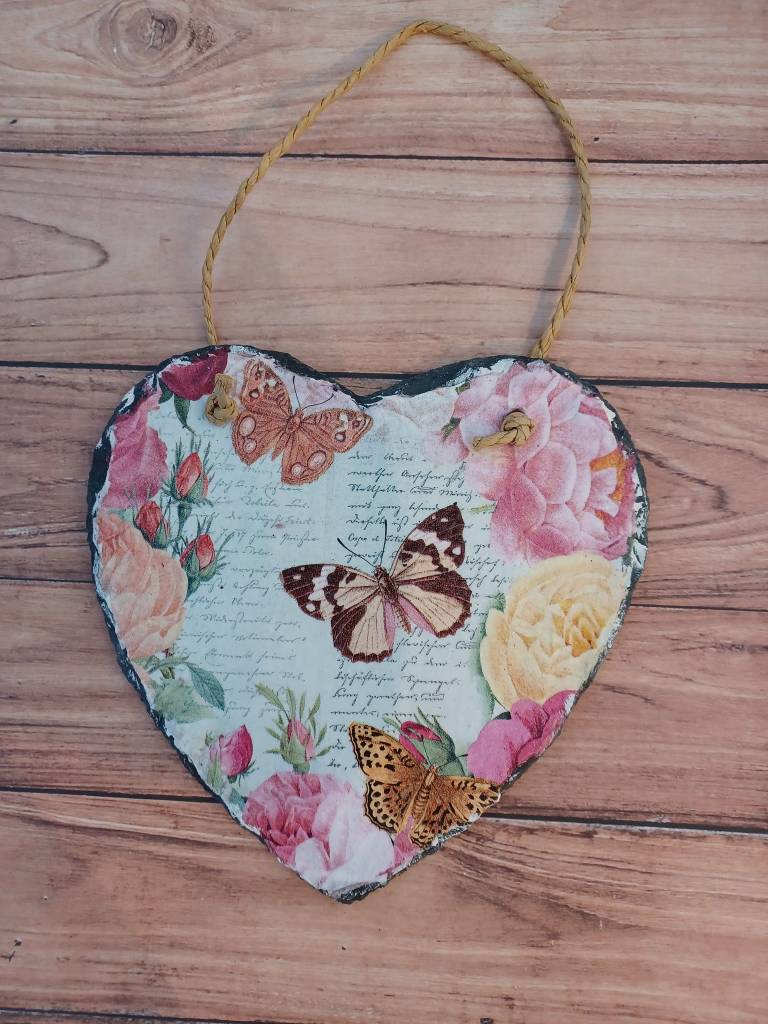 From Slate Hearts, to Slate Coasters, Glass Jars, bottles & Wooden Items.. I can decoupage onto most materials, I can also offer a personalised option, Send me your ideas, or Photos, Could be for a loved one, a wedding photo, a pet, a place or even a car.. I can add onto your material of choice.
